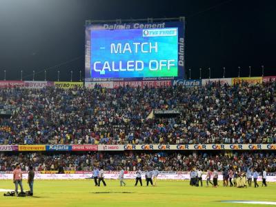 तरीही मैदान सुकवण्यात कर्मचाऱ्यांना अपयश आले. यामुळे बराच वेळ वाया गेल्यामुळे अखेर हा सामना रद्द करण्याचा निर्णय घेण्यात आला.