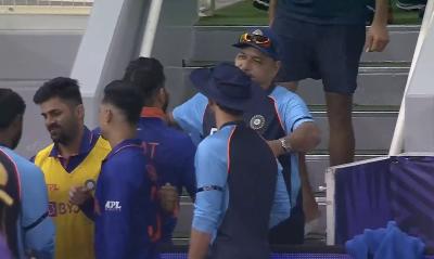 Farewell captain Virat Kohli and coach Ravi Shastri: विराट कोहली ट्वेंटी-२० संघाचा कर्णधार म्हणून आता पुन्हा दिसणार नाही. ट्वेंटी-२० वर्ल्ड कप स्पर्धेनंतर कर्णधारपद सोडणार असल्याचे विराटनं जाहीर केलं होतं आणि आज त्याच्या नेतृत्वाखाली टीम इंडिया अखेरचा ट्वेंटी-२० सामना खेळले. मुख्य प्रशिक्षक रवी शास्त्री, आर श्रीधर व भरत अरुण यांचाही कार्यकाळ संपला आणि आता टीम इंडियाला राहुल द्रविड हा नवा प्रशिक्षक मिळाला. पाच वर्ष मुख्य प्रशिक्षकपदावर राहिलेले रवी शास्त्री आज इमोशनल झाले आणि नामिबियाविरुद्धचा सामना संपल्यानंतर त्यांनी विराटला कडकडून मिठी मारली. विराट व शास्त्री यांची चांगलीच जोडी जमली होती