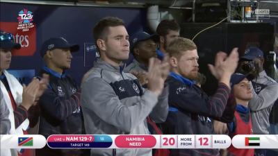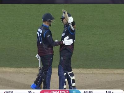 बसिल हमिद, झहूर खान, जुनैद सिद्धीकी व कार्तिक मैयप्पन यांनी विकेट्स घेतल्या. कर्णधार गेऱ्हार्ड इरास्मस ( १६), जॅक फ्रायलिंक ( १४), मिचेल व्हॅन लिगेन ( १०) यांना अपयश आले. अनुभवी डेव्हिड विसे व रुबेन ट्रम्पल्मन यांनी संघर्ष सुरू ठेवला होता. ३३ धावांवर विसेला जीवदान मिळाले.
