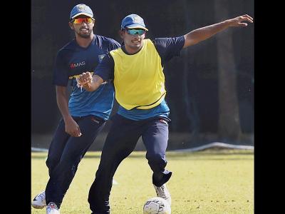 श्रीलंकन क्रिकेटपटू सराव करताना.