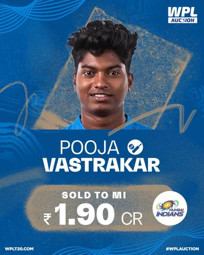 पूजा वस्त्राकर ( मुंबई इंडियन्स) -१.९० कोटी