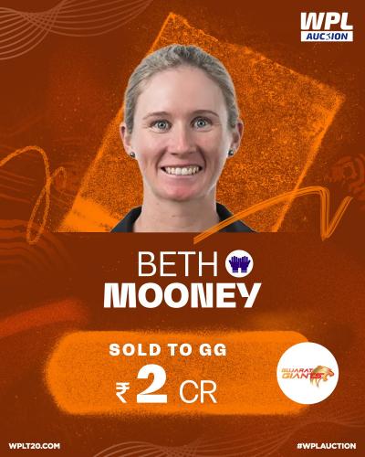 बेथ मूनी ( गुजरात जायंट्स) - २ कोटी