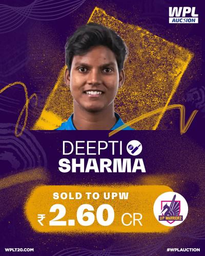 दीप्ती शर्मा ( यूपी वॉरियर्स ) - २.६० कोटी
