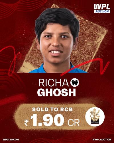 रिचा घोष ( रॉयल चॅलेंजर्स बंगळुरू) - १.९० कोटी