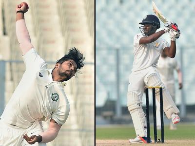 ईडन गार्डन स्टेडियमवर रणजी करंडक सामन्यात विदर्भाचा रजनीश गुरबानी कर्नाटकाचा कर्णधार एसटीआर बिन्नी विरोधात पायचीतचे जोरदार अपील करताना.