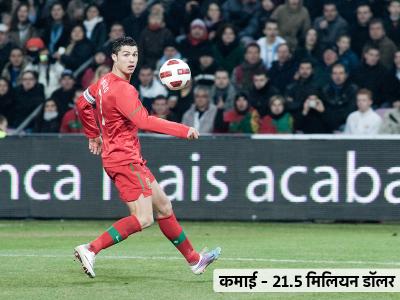 ब्राझीलचा फुटबॉलपटू ख्रिस्तियानो रोनाल्डो २१.५ मिलियन डॉलरसह चौथ्या स्थानावर