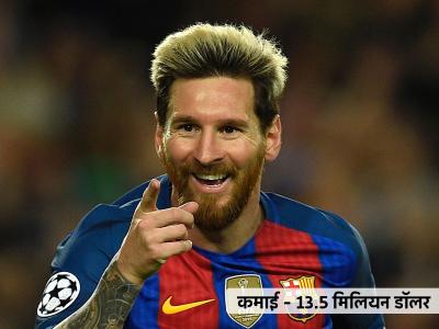 मेसीची १३.५ मिलियन डॉलरच्या कमाईसह नवव्या स्थानावर वर्णी लागली आहे.