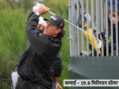 गोल्फपटू फिल मिकलसनची कमाई १९.६ मिलियन डॉलर आहे