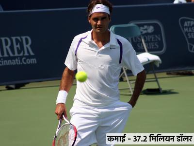 37.2 मिलियन डॉलरच्या कमाईसह टेनिस स्टार रॉजर फेडररनं अव्वल स्थान काबीज केलं