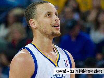 १३.४ मिलियन कमाई करणाऱ्या बास्केट बॉलपटू स्टिफन कॅरीने पहिल्या दहा खेळाडूंमध्ये स्थान मिळवले आहे.