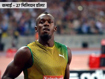वेगवान धावपटू उसेन बोल्ट 27 मिलियन डॉलरसह तिसऱ्या स्थानावर आहे