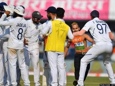 जाळीवरून उडी मारून हा चाहता थेट मैदानात पोहोचला. मैदानात भारतीय संघ एकत्रितपणे उभा होता.