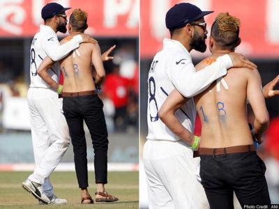 एका चाहत्याने आपल्या अंगावर विराटचे नाव लिहिले होते. अचानक हा चाहता आपल्या आसनावरून उठला. समोर असलेली मोठी जाळी त्याने ओलांडली.