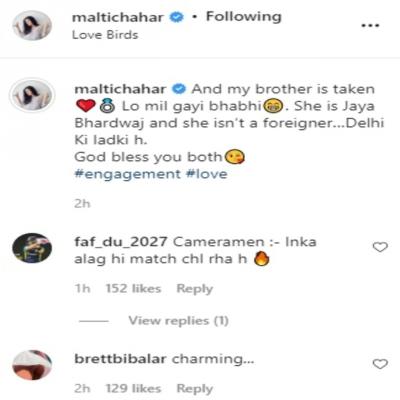 दीपकनं मग दुसरी अंगठी काढून तिला त्याच्या बोटात घालायला सांगितली. पण, ही मुलगी कोण आहे, याबाबत अद्याप माहिती मिळालेली नाही. दीपकचे नाव 'बिग बॉस' फेम सिद्धार्थ भारद्वाज (Sidharth Bharadwaj) याची बहीण जया भारद्वाज हिच्याशी जोडले गेले होते आणि ही तिच मुलगी आहे असा दावा केला जात आहे.