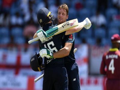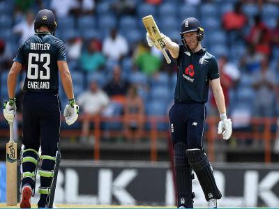 जोस बटलरने १२ षटकार खेचून ७७ चेंडूंत १५० धावांचा पाऊस पाडला. मॉर्गननेही ८८ चेंडूंत १०३ धावा कुटल्या आणि इंग्लंडने ५० षटकांत ६ बाद ४१८ धावांचा डोंगर उभा केला. इंग्लंडची ही वेस्ट इंडिजविरुद्धची सर्वोत्तम कामगिरी ठरली.