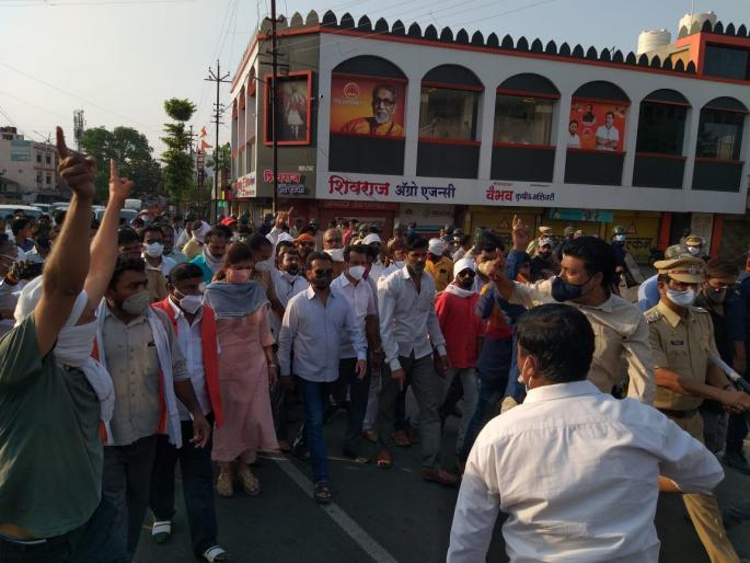 बुलडाणा: शिवसेनेचे आमदार संजय गायकवाड यांच्या वादग्रस्त वक्तव्यानंतर भाजप-शिवसेनेमध्ये झालेल्या राड्याचे पडसाद १९ एप्रिल रोजी बुलडाण्यात उमटले. संपूर्ण प्रकाराचा निषेध करून बुलडाण्यातून परत जात असतना काही अज्ञातांनी माजी मंत्री तथा आ. संजय कुटे यांच्या वाहनावर हल्ल्याचा प्रयत्न केला.या प्रकारामुळे नमते घेतलेल्या माजी मंत्री डॉ. संजय कुटे यांनी जो पर्यंत दोषिंवर कारवाई होत नाही, तोवर बुलडाणा न सोडण्याचा निर्णय घेतला आहे. जुन्या मलकापूर नाक्यापासून जवळपास दीड किलोमीटर जिल्हा पोलिस अधीक्षक यांच्या कार्यालयापर्यंत भाजप कार्यकर्ते व आ. श्वेता महाले, माजी आ. विजयराज शिंदे यांच्यासह पायी येत त्यांनी पोलिस अधीक्षक कार्यालयासमोरच ठिय्या दिला. दरम्यान त्यानंतर जिल्हा पोलिस अधीक्षकांशी चर्चा करण्यासाठी आमदार द्वय आणि माजी आ. विजयराज शिंदे गेले होते. मात्र जो पर्यंत दोषींवर कारवाई होत नाही तोवर बुलडाणा सोडणार नसल्याची आपली भूमिका ठाम असल्याचे आ. कुटे यांनी ‘लोकमत’शी बोलताना सांगितले.दुसरीकडे माजी मंत्री तथा विद्यमान आ. संजय कुटे यांच्या वाहनावरील कथितस्तरावरील दगडफेक आणि हल्ल्याचा प्रयत्न झाल्यानंतर बुलडाणा शहरातील वातावरण तणावपुर्ण बनले होते. भाजपचे आमदार द्वय डॉ. कुटे आणि श्वेता महाले यांनी पुन्हा बुलडाण्यात येण्याचा निर्णय घेतल्यामुळे जिल्हा पोलिस अधीक्षक अरविंद चावरिया यांनी स्वत: जुना मलकापूर नाका काठून त्यांची समजूत काढण्याचा प्रयत्न केला. मात्र आ. कुटे हे त्यांच्या निर्णयावर ठाम होते. तर दोन आमदारांनाही पोलिस संरक्षण देऊ शकत नाही, या बद्दल आ. श्वेता महाले यांनी एसपीकडे खेद व्यक्त केला. यावेळी घोषणाबाजी करत त्यांच्यासह भाजपचे पदाधिकारी व कार्यकर्ते थेट जिल्हा पोलिस अधीक्षक कार्यालयासमोर ठाण मांडून बसले होते. सायंकाळी सात वाजेत पर्यंत पोलिस अधीक्षकांच्या दालनात आमदरा कुटे, श्वेता महाले, माजी. आ. विजयराज शिंदे यांच्या पोलिस अधीक्षकांशी चर्चा सुरू होती. मात्र चर्चा कुठल्याही निर्णयाप्रत आली नव्हती.