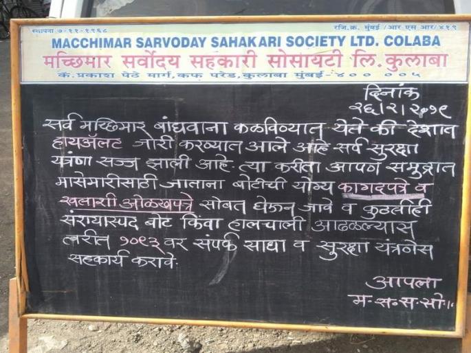 काल पहाटे आपल्या वायुदलाच्या 12 लढाऊ मिराज विमानांनी पाकिस्तानात घुसून जैश ए मोहम्मदच्या सुमारे 350 अतिरेक्यांचा अड्डा उध्वस्त करून त्यांना कंठस्थान घातले होते. या धर्तीवर देशात हायअलर्ट जारी करण्यात आला असून सुरक्षा यंत्रणा सज्ज आहेत. मच्छिमार बांधवांनी डोळ्यात तेल घालून सतर्क असावे. तसेच समुद्रात मासेमारीला जातांना योग्य कागदपत्रे, खलाशीे ओळखपत्रे घेऊन जावीत. तसेच कोणतीही संस्थास्पद बोटी किंवा हालचाली, वस्तू आढळल्यास त्वरित 1093 वर संपर्क साधून सुरक्षा यंत्रणेला सतर्क करावे यासाठी आता मच्छिमार संघटना पुढे आल्या आहेत. कुलाब्याच्या मच्छिमार सर्वोदय सहकारी सोसायटीने फलक लावून त्यांच्या मच्छिमार सभासदांना सतर्क केले आहे. तर वेसावा नाखवा मंडळाने देखील त्यांच्या सभासदांना आणि खलाश्यांना मासेमारी करतांना सतर्क राहण्यास सांगितले असल्याची माहिती या मंडळाचे अध्यक्ष देवेंद्र काळे यांनी दिली.