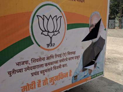 मुंबई - लोकसभा निवडणुकीच्या प्रचाराने देशभरात वातावरण तापले आहे. राजकीय पक्षांचे एकमेकांवर आरोप - प्रत्यारोप सुरु आहेत. त्यातच ईशान्य मुंबईचे भाजपचे उमेदवार मनोज कोटक यांच्या प्रचार रॅलीसाठी तयार असलेल्या प्रचार रथाची नासधूस करण्यात आली. मानखुर्द परिसरातील प्रचार रथावरील पोस्टरवर लावलेल्या पंतप्रधान नरेंद्र मोदींचे फोटो धारदार शस्त्राने फाडून वाहन चालकाला धमकावून शिवीगाळ करण्यात आली. याप्रकरणी भाजपाद्वारे शिवाजी नगर पोलीस ठाण्यात लेखी तक्रार दाखल करण्यात आली.