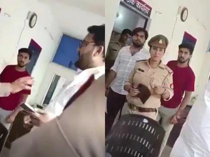 नवी दिल्ली - उत्तर प्रदेशमध्ये भाजपा नेत्याची गुंडगिरी पाहायला मिळाली आहे. ग्रेटर नोएडा येथील पोलीस स्टेशनमध्ये भाजपा नेत्याच्या गैरवर्तनाचा एक व्हिडीओ समोर आला आहे. भाजपा युवा मोर्चाचे जिल्हाध्यक्ष राज नागर हे काही तरुणांसह शहरातील बीटा-2 पोलीस ठाण्यात दाखल झाले. ते महिला पोलिसांसमोरच शिवीगाळ करायला लागले. पोलीस कर्मचाऱ्याने विरोध केल्यावर 'इन्स्पेक्टर, तुमचं डोकं ठिकाण्यावर नाही' असं म्हणाल्याची धक्कादायक घटना समोर आली आहे. जिल्हाध्यक्षकावर रोडरेजमधील आरोपी तरुणाला पोलीस ठाण्यातून नेल्याचा आरोप आहे.