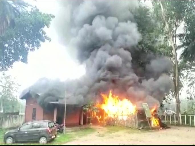 गुवाहाटी - आसाममध्येपोलिसांच्या कोठडीत एका व्यक्तीचा कथितपणे मृत्यू झाल्यानंतर जमावाने पोलीस ठाण्याला आग लावल्याची घटना घडली आहे. हा धक्कादायक प्रकार नगांव जिल्ह्यातील बटाद्रवा येथे घडला. येथे संतप्त जमावाने आज पोलीस ठाण्यात मोठ्या प्रमाणावर मोडतोड केली. त्यानंतर पोलीस ठाण्याला आग लावली. यात संपूर्ण पोलीस ठाणे जळून गेले.