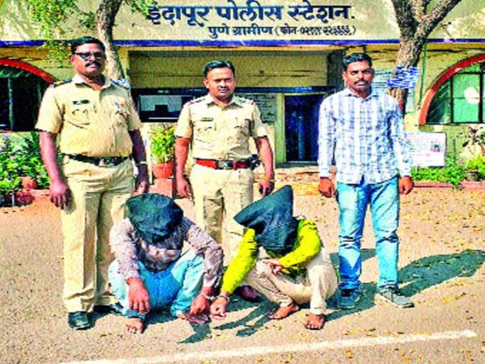 २६ फेब्रुवारीला एडिसन मैथ्यू यांनी स्वत: त्यांच्या सात जणांनी अपहरण केल्याची तक्रार दिली. निमगाव केतकी ते इंदापूर रोडवरील वेताळबाबा मंदिराजवळ त्यांच्या गाडीला हात करून, थांबवून, अनोळखी ७ लोकांनी चाकूचा धाक दाखवून त्यांच्या दुसºया गाडीतून नेत त्यांचे अपहरण केले होते. त्यांच्याकडे २० लाख रुपयांची खंडणी मागितली आणि दुसºया दिवशी २०० रुपये देत त्यांना मारहाण करून आरोपींनी सोडून दिले. त्यांच्या तक्रारीनंतर सात जणांवर गुन्हा दाखल करण्यात आला होता. या गुन्ह्याचे गांभीर्य ओळखून पुणे ग्रामीण पोलीस अधीक्षक संदीप पाटील, अपर पोलीस अधीक्षक डॉ. संदीप पखाले, उपविभागीय पोलीस अधिकारी नारायण शिरगावकार यांनी गुन्ह्यासंदर्भात मार्गदर्शन करून तत्काळ आरोपीचा शोध घेऊन गुन्हा उघडकीस आणण्याबाबत सूचना केल्या. त्याप्रमाणे इंदापूर पोलीस ठाण्याचे पोलीस निरीक्षक मधुकर पवार यांच्या मार्गदर्शनाखाली पोलीस उपनिरीक्षक राम गोमारे व त्यांच्या पथकाने तपासाचे चक्र फिरवून जलद हालचाली करून कारवाई केली. या प्रकरणातील आरोपी सौरभ बाळू तरंगे (वय २०, रा. बळपुडी, ता. इंदापूर) आणि राहुल दत्तू गडदे (वय २८, रा. डोंबावाडी, जि. सोलापूर) या दोघांना ताब्यात घेऊन चौकशी केली. त्यावेळी त्यांनी गुन्ह्याची कबुली दिली. आरोपी सौरभ बाळू तरंगे व राहुल दत्तू गडदे या दोघांना बुधवारी (दि. १३) रात्री अटक केली असून त्यांना इंदापूर फौजदारी न्यायालयासमोर हजर केले असता न्यायालयाने त्यांना २३ मार्चपर्यंत पोलीस कोठडी सुनावली आहे.