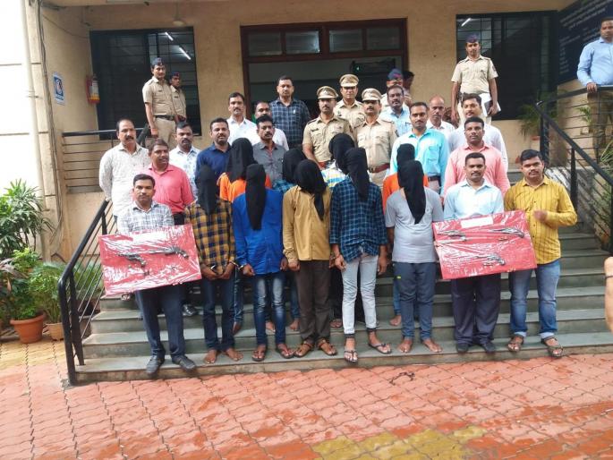 ठाणे - कळवा येथील के. के. ज्वेलर्स या दुकान मालकास शस्त्राचा धाक दाखवून लुटणाऱ्या नऊ जणाच्या टोळीला कळवा पोलिसांनीअटक केली आहे.या प्रकरणात 27 जून रोजी गुन्हा दाखल झाल्या नंतर कळवा पोलिसांनी वरिष्ठांच्या मार्गदर्शनाखाली घटनास्थळावरून मिळणारे पुरावे आणि सीसीटीव्ही फुटेज यांच्या माध्यमातून संशयित आरोपी आकाश झुम्मा चौधरी (२८) याला ताब्यात घेऊन त्याच्याकडे चौकशी केली असता ह्या गुन्ह्यातील मुख्य सूत्रधार मुलचंद चौथी विश्वनाथ, संदीपकुमार संसारबहादूर सिंग व त्यांचे साथ साथीदार सुशीलकुमार लटूरिसिंग चौहान, राहणार पी. एम. सी. चाळ दादोजी कोंडदेव स्टेडियम जवळ ठाणे, मनोज उर्फ पप्पू शिवप्रसाद शर्मा जयभोले चाळ दिवा, आकाश झुम्मा चौधरी, धर्मवीर गंगाराम पाशी राहणार बैठक नगर झोपडपट्टी दिवा, भोलेसिंग अमरसिंग सिंह गणेशनगर दिवा, सत्तमसिंग श्रीशिवशंकर शुक्ला राहणार मनोज शर्मा झोपडपट्टी दिवा, सोनू उर्फ अमितसिंग रामप्रकाश सिंह राहणार गणेशनगर दिवा यांना अटक करण्यात आली, त्यांच्या कडून चार गावठी कट्टे, 1 रिव्हॉल्व्हर व आठ जिवंत काडतुसे हस्तगत करण्यात आली असे अप्पर पोलीस आयुक्त अनिल कुंभारे यांनी पत्रकार परिषदेमध्ये सांगितले. आरोपींनी मुंब्रा येथील ज्वेलर्स दुकानाचा मालक दुकान बंद करून घरी जात असताना त्याच्या जवळील सोन्याच्या दागिन्यांची आणि रोख रक्कमेची बॅग खेचून चोरी करण्याचा प्रयत्न केला होता. त्यास मालकाने विरोध केला असता यातील आरोपीने मालकाच्या डोक्यात आपल्याकडील बंदूक डोक्यात मारून मारहाण केली होती. त्यावेळी मालकाला वाचविण्यासाठी नागरीक जमा झाले असता आरोपी हे हवेत गोळीबार करून पळून गेले. महात्मा नगर पोलीस ठाण्याच्या हद्दीत फिर्यादी कारखान्यामध्ये सोन्याचे दागिने बनवण्याचे काम करीत असताना यातील आरोपी यांनी दुकानात प्रवेश करून फिर्यादी यांना रिव्हॉल्वरचा धाक दाखवून व मारहाण करून 20 ग्राम सोन्याचे दागिने व 1, 30, 000/- रुपये रोख रक्कम जबरीने चोरी केली होती. डायघर पोलीस ठाण्याच्या हद्दीत फिर्यादी व्यवसायाची 1, 85, 000/- रोख रक्कम घेऊन जात असताना या आरोपींनी रिव्हॉल्व्हरचा धाक दाखवून ही रक्कम लुटली होती. हिललाईन पोलीस ठाण्याच्या हद्दीतील फिर्यादी व्यवसायाची 80, 000/- रुपयांची रोख रक्कम घेऊन जात असताना आरोपींनी वरील रक्कम लुटली होती. मुंब्रा पोलीस ठाण्याच्या हद्दीतील फिर्यादी हे त्यांचे सोन्याचे दुकान बंद करून घरी जात असताना आरोपी यांनी चाकूचा धाक दाखवून त्यांच्याकडून 273 ग्राम वजनाचे सोन्याचे दागिने व 25, 000/- रुपये रोख लुटले होते. हे सगळे गुन्हे त्यांच्याकडे तपास केला असता उघड झाले आहेत. त्याचबरोबर त्यांनी ठाणे आयुक्तालयातील टेंभीनाका, जांभळीनाक ठाणे, कळवा मार्