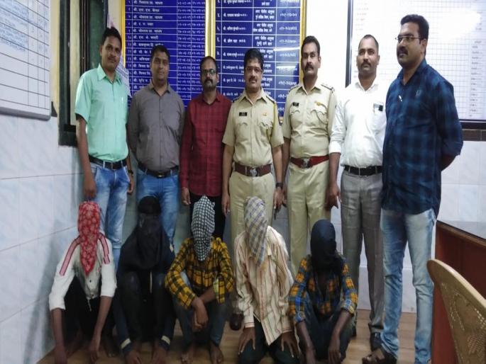 उल्हासनगर कँम्प नं 4 येथील स्मशानभूमी परिसरात विठ्ठलवाडी पोलीस ठाण्याचे गुन्हे प्रकटिकरण विभागाचे पोलीस नाईक दिनेश पाटील आणि पोलीस शिपाई समिर गायकवाड बुधवारी मध्यरात्री पेट्रोलिंग करित होते. त्यावेळी स्मशानभुमी समोरील रस्त्यावर एका रिक्षामध्ये काही गुन्हेगारी पार्श्वभूमीचे इसम दडून बसल्याची माहिती मिळाली. पेट्रोलिंग करणारे पाटील व गायकवाड यांनी विठ्ठलवाडी पोलीस ठाण्यात संपर्क साधून घटनेची माहिती दिल्यावर, काही मिनिटात इतर पोलीस कर्मचारी मदतीला धावून आले. त्यांनी सापळा रचून रिक्षात बसलेल्या पाच जणांना ताब्यात घेत त्यांच्यासह रिक्षाची झडती घेतली. पोलिसांनी घेतलेल्या झडतीत रिक्षात दोन कटावनी, धारधार शस्त्र,नायलॉनची दोरी असे साहित्य आढळून आले.विठ्ठलवाडी पोलिसांनी अटक केलेल्या इसमाकडे पोलिसांनी अधिक चौकशी केली असता, त्यांनी दरोड्यासाठी आल्याची कबुली दिली. आरोपींची नावे योगेशचंद्र कुलकर्णी, राहुल राय, दिनेश गायकवाड, सन्नी काळे आणि राघविंद्र दासरी अशी असून यातील एक आरोपी हा सराईत गुन्हेगार असल्याची माहिती पोलिसांनी दिली आहे. या आरोपींना न्यायालयात हजर केले असता ८ जुलैपर्यंत पोलीस कोठडी सुनावण्यात आली. याप्रकरणाचा अधिक तपास पोलीस उपनिरीक्षक मंगेश जाधव हे करित आहेत.