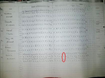 डॉ. दाभोलकर यांच्या हत्येच्या आदल्या दिवशी १९ आॅॅगस्ट २०१३ रोजी सचिनची साप्ताहिक सुटी होती. यामुळे तो त्यादिवशी कामावर उपस्थित नव्हता. २० आॅगस्ट रोजी दाभोलकर यांची हत्या झाली त्यादिवशी तो गैरहजर होता. यामुळे १९ आणि २० आॅॅगस्ट रोजीच्या हजेरी रजिस्टरवर त्याची स्वाक्षरीच नाही. हे रजिस्टर सीबीआयने जप्त केल्याची माहिती वरिष्ठ सूत्रांनी दिली.