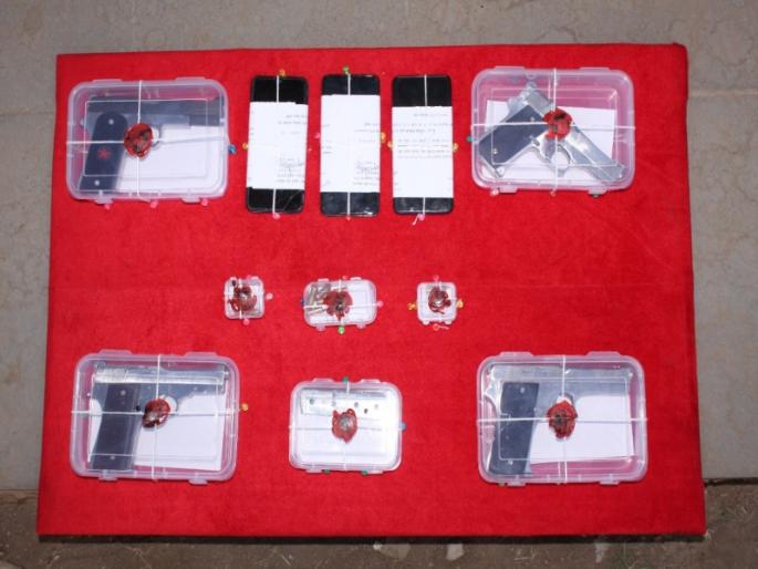 या माहितीच्या अनुषंगाने त्यांनी कारवाईसाठी सहायक पोलिस निरीक्षक तासगावकर आणि पोलिस उपनिरीक्षक पाटील यांना सूचना केली. त्याप्रमाणे पथकाने शिवराज पेट्रोल पंप परिसरात सापळा लावला. त्यावेळी दुचाकी (एमएच ४२, एव्ही १९१५)वरून आलेल्या दोघांना पकडले. त्यांच्याकडून दोन पिस्टल आणि सहा काडतुसे, एक मोबाईल व दुचाकी असा एकूण २ लाख १६ हजार २०० रुपयांचा मुद्देमाल जप्त केला. त्यांच्याकडे अधिक माहिती घेतली असता त्यांनी आणखी दोन साथीदार सातारा शहराजवळील वाढेफाटा येथे असून त्यांच्याकडे दोन पिस्टल असल्याची माहिती दिली. त्यानुसार हे पोलिस पथक वाढेफाटा येथे गेले व दोघांनाही पकडले.
