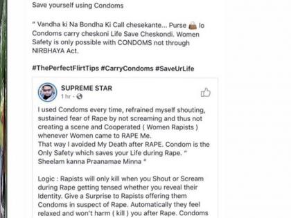 डॅनिअल श्रवण या विशाखापट्टनममधील निर्मात्याने सोशल मिडीयावर हा सल्ला दिला आहे. त्याने म्हटले आहे की, मुलींनी 100 नंबर डायल करण्यापेक्षा पर्समध्ये कंडोम ठेवावा. कंडोमचा प्रयोग करून स्वत:ला वाचवावे. महिलांची सुरक्षा केवळ कंडोममुळेच होऊ शकते, निर्भया कायद्यामुळे नाही.