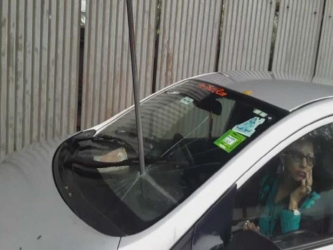 मुंबई - जोगेश्वरी परिसरात बांधकाम सुरू असलेल्या इमारतीवरून कारवर लोखंडी राॅड पडल्याची दुर्घटना घडली. या दुर्घटनेत गाडीतील फॅशन डिझाइनर महिला थोडक्यात बचावली आहे. या घटनेचा फोटो सोशल मिडियावर मोठ्या प्रमाणात व्हायरल होत आहे. कारवर काही इंचावर हा राॅड पडल्याने महिला बचावली आहे. वाहतूक पोलिसांनी घटनास्थळी धाव घेत तो राॅड कारवरून हटवला.