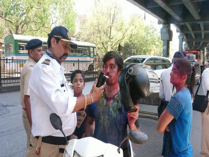 मुंबई - आज धुळवड सणाला गालबोट लागू नये म्हणून मुंबई पोलीसांचे पथक ठिकठिकाणी सज्ज होते. सणाच्या निमित्ताने रस्त्यावर मद्यपान करून वाहन चालविणाऱ्यांना पोलिसांनी हिसका दाखवला आहे. मुंबई पोलिसांसह त्याच्या वाहतूक विभागाने देखील विशेष मोहीम राबवून नाकाबंदी ठिकाणी आज रात्री दहा वाजेपर्यंत 725 तळीरामांवर ड्रंक अँड ड्राइव्ह प्रकरणी कारवाई केली आहे.