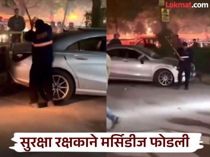 Guards Smash Mercedes Video: मर्सिडीज कारमधून तरुणीसोबत आलेल्या तरुणाचा सुरक्षा रक्षकांसोबत वाद झाला. सुरक्षा रक्षकाने त्याला नियम सांगितला. पण, तरुणाने ऐकून न घेता मारहाण केली. मग जे घडलं ते सगळं कॅमेऱ्यात कैद झालं. ...
