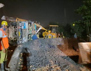 मुंबई नाशिक महामार्गावर अपघात; रस्त्यावर पसरला उलटलेल्या ट्रकमधील कोळसा