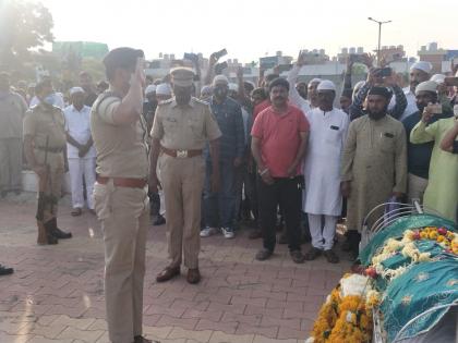 कर्तव्यावर असलेले अहमदखान पठाण यांच्या पार्थिवावर लातुरातील कब्रस्थानमध्ये पाेलीस दालाच्या वतीने पाेलीस अधीक्षक निखिल पिंगळे यांच्या हस्ते पुष्पचक्र अर्पण करण्यात आले. त्यानंतर पाेलीस दलातील कर्मचाऱ्यांनी हवेत बंदुकीच्या फैरी झाडून मानवंदना दिली. अंत्यविधीसाठी पाेलीस दलातील वरिष्ठ अधिकारी, समाजबांधवांची माेठ्या संख्यने उपस्थिती हाेती.