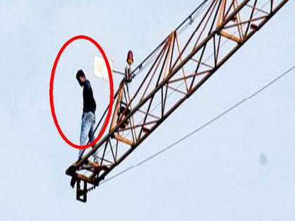 हा तरुण क्रेनवर जवळ जवळ ४५ मिनिटे उडी मारण्याची धमकी देत उभा होता. खाली जमलेल्या सर्व लोक त्याला उडी न मारण्याची विनवणी करत होते. मात्र त्या मुलाने उडी मारली आणि पुढच्या क्षणी आपला निर्णय बदलत क्रेनला घट्ट पकडले. अखेर क्रेनच्या टोकाचा काही भाग हाताने घट्ट पकडता आल्याने तो खाली न पडता लटकून राहिला. हाताने क्रेन पकडून पाय खाली लोंबकळत काही काळ लटकून होता. त्यानंतर बऱ्याच प्रयत्नांनंतर तो पुन्हा क्रेनवर चढला आणि त्याचा मरता मरता जीव वाचला.