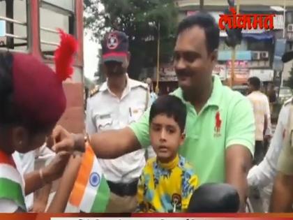 शाळकरी विद्यार्थ्यांनी वाहतुकीचे नियमी तोडणाऱ्यांना राखी बांधून वाहतुकीचे नियम पाळण्याचा संदेश दिला आहे.