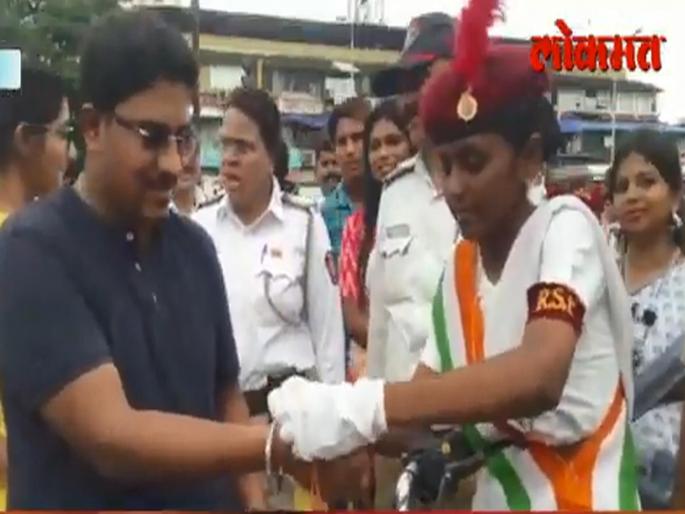 नवी मुंबई - वाहतुकीचे नियम तोडणाऱ्या दुचाकी आणि चारचाकी प्रवाशांना शाळेतील विद्यार्थींनी राख्या बांधल्या. बिना हेल्मेट दुचाकीस्वार आणि सिटबेल्ड न लावणाऱ्या चारचाकी वाहन चालकांना तसेच वाहतुकीचे नियम धाब्यावर बसविणाऱ्यांना वाहतुकीचे नियम पाळण्याबाबत जनजागृती करण्यासाठी एपीएमसी आणि तुर्भे वाहतूक पोलिसांनी शाळकरी विद्यार्थ्यांसोबत आज रक्षाबंधननिमित्त अनोखा कार्यक्रम हाती घेतला. शाळकरी विद्यार्थ्यांनी वाहतुकीचे नियमी तोडणाऱ्यांना राखी बांधून वाहतुकीचे नियम पाळण्याचा संदेश दिला आहे.