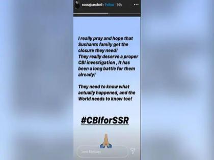 सूरज पांचोलीने सुशांत सिंह राजपूतच्या मृत्यूप्रकरणी सीबीआय तपासणीची मागणी करत "मी खरंच अशी प्रार्थना करतो आणि आशा बाळगतो की सुशांत सिंग राजपूतच्या कुटुंबियांना जे त्यांना हवं ते मिळो, सुशांतचे कुटुंबीयांचा सीबीआय तपासणीची मागणी करण्यास हक्क आहे. पहिल्यापासून यासाठी त्यांना मोठी लढाई लढावी लागली आहे. त्यांना हे जाणून घेणं आवश्यक आहे की, शेवटी नेमकं काय झालं होतं आणि जगालाही हे माहित झालं पाहिजे." असे लिहिले आहे. सूरजशिवाय परिणीती चोपडा, अंकिता लोखंडे, कृति सेनन आणि कंगना रानौत यासारख्या कलाकारांनी सुशांत सिंग राजपूतच्या मृत्यूप्रकरणी सीबीआय तपासणीची मागणी केली आहे.