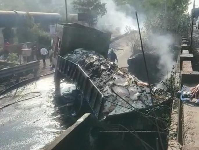 अंबरनाथ - अंबरनाथ आनंदनगर एमआयडीसी मधून गंधकाने भरलेला ट्रक अचानक पेटल्याने मोठा अपघात घडला. ट्रक पडल्याचे लक्षात येताच चालकाने ट्रक तसाच सोडून पळ काढल्याने हा ट्रक रिव्हर्समध्ये आला आणि मागून येणाऱ्या रिक्षाला धडक दिली. यात रिक्षातील दोघांना भाजून गंभीर दुखापत झाली आहे. रिक्षात बसलेले वासुदेव भोईर आणि गुलाबबाई भोईर यांचा मृत्यू झाला आहे.