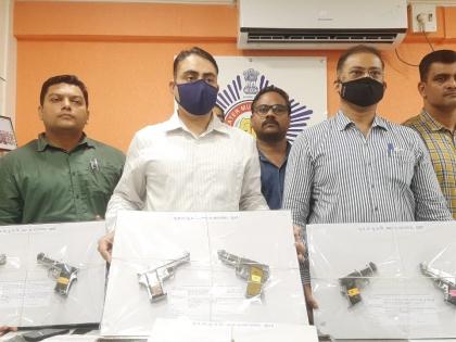 गुन्हे शाखेच्या कक्ष ७ चे वरिष्ठ पोलीस निरिक्षक मनीष श्रीधनकर यांना विक्रोळी पूर्वेकडील सर्व्हिस रोड परिसरात पिस्तुलाच्या विक्रीसाठी दुकली येणार असल्याची माहिती मिळाली. त्यानुसार पथकाने सापळा रचला. दुकली तेथे येताच त्यांच्या संशयास्पद हालचाली पथकाच्या नजरेत पडताच त्यांना ताब्यात घेतले. त्यांच्या झडतीत ८ देशी पिस्तुलासह ८ जीवंत काडतुसे मिळून आली आहेत. त्यांच्या विरुद्ध गुन्हा नोंदवत त्यांना अटक करण्यात आली आहे. अटक दुकलीला २३ ऑगस्ट पर्यंत पोलीस कोठड़ी सुनाविण्यात आली आहे. दोघेही मध्यप्रदेशचे रहिवासी आहे. याप्रकरणी गुन्हे शाखा अधिक तपास करत आहेत.