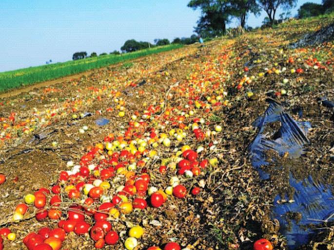 पाच टन टोमॅटोचा वावरात ‘लाल चिखल’