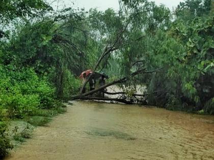 तसेच कलदेव निंबाळा मार्गालगतची झाडे उन्मळून पडल्याने वाहतूक ठप्प आहे. विद्युत वाहक तारा तुटल्याने वीजपुरवठा सध्या खंडित आहे. धो-धो पडलेल्या या पावसामुळे काढणी सुरू असलेले सोयाबीन तसेच उसाचे मोठे नुकसान झाले आहे.