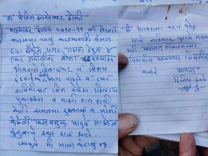 शिवसेना उमेदवाराचं चिठ्ठीत नाव लिहून शेतकऱ्याने केली आत्महत्या