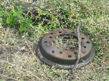 टॅक्टर ट्रॉलीच्या टायरमध्ये हवा भरताना हवेच्या दाबाने टायरची डिक्स अचानक उडली