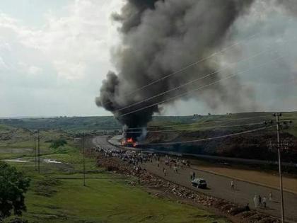रसायनाचा ट्रक अचानक पेटल्याने दोन तास वाहतूक ठप्प, 40 लाखाचे नुकसान