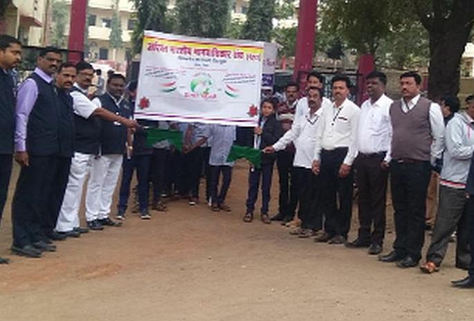 पिंपळनेर : येथे जागतिक मानवाधिकार सप्ताह निमित्ताने विद्यार्थ्यांनी रॅलीचे आयोजन केले होते. या कार्यक्रमातून मानवी हक्काविषयी प्रबोधन करण्यात आले.अखिल भारतीय मानवाधिकार संघ पिंपळनेर व कर्मवीर आ.मा. पाटील विद्यालयाच्या संयुक्तपणे प्रथम वर्ष या रॅलीचे आयोजन करण्यात आले. व्यक्तीला जन्मजात काही मूलभूत अधिकार व हक्क प्राप्त झालेले आहेत. त्याची जाणीव प्रत्येक व्यक्तीला व्हावी याबाबतची जनजागृती या रॅलीतून करण्यात आली. सोमवारी सकाळी नऊ वाजता कर्मवीर आ.मा. पाटील विद्यालयाच्या प्रांगणातून रॅलीचे आयोजन करण्यात आले.सुरुवातीला अखिल भारतीय मानवाधिकार संघाचे अध्यक्ष प्रवीण थोरात व प्राचार्य ए.बी. मराठे यांनी रॅलीला हिरवा झेंडा दाखविला. ही रॅली महाविद्यालयातून सामोडे चौफुली मार्ग, बसस्थानक, गावातून मेन रोड बाजार पेठ, धनश्री ज्वेलर्स मार्ग गांधी चौक व नदी वरील लहान पुलावरून कर्मवीर आ. मा. पाटील विद्यालयात रॅलीचा समारोप करण्यात आला.रॅलीत कर्मवीर आ.मा. पाटील विद्यालयाचे विद्यार्थी व शिक्षक सहभागी झाले होते. यावेळी अखिल भारतीय मानवाधिकार संघाचे अध्यक्ष प्रवीण थोरात, प्राचार्य ए.बी. मराठे, संस्थेचे स्कूल कमिटीचे चेअरमन डॉ.विवेकानंद शिंदे व संघाचे पदाधिकारी अरुण गांगुर्डे, प्रमोद जोशी, कल्पेश टाटिया, धनंजय देवरे, दिनेश भालेराव, अनिल महाले, बाबा पेंढारकर, संभाजी शिंदे तसेच प्राथमिक आरोग्य केंद्र पिंपळनेर डॉ. भूषण जोशी, आ.मा. पाटील विद्यालयाचे शिक्षक जी.व्ही. भामरे, पी.एच. पाटील व शिंपी आदी उपस्थित राहून रॅलीसाठी सहकार्य केले. रॅलीस सहकार्य करणाऱ्या सर्वांचा सत्कार करून रॅलीची सांगता करण्यात आली.