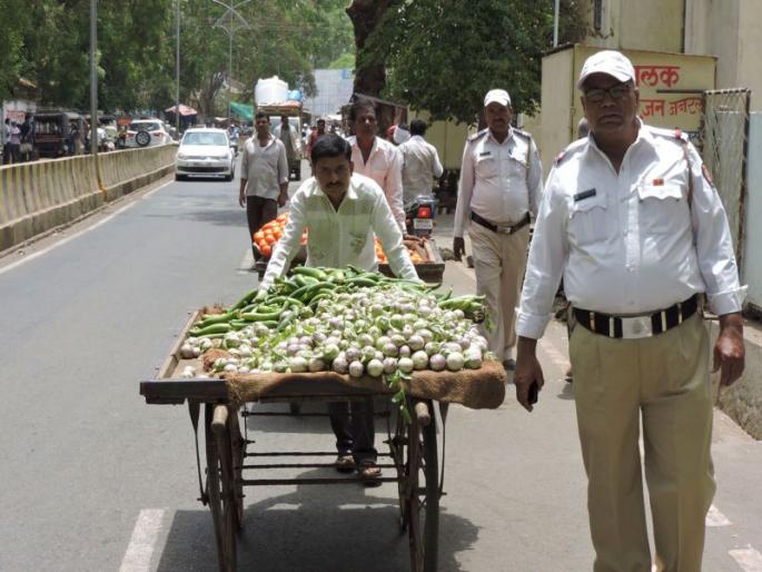 धुळ्यात वाहतुकीस अडथळा, १५ लोटगाड्या ताब्यात