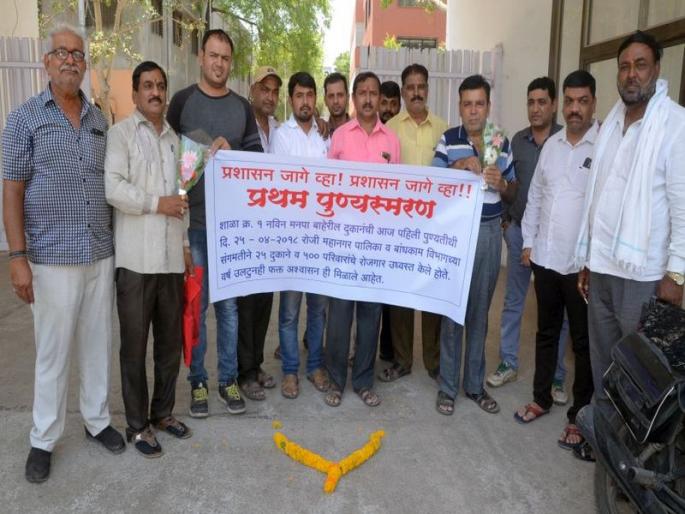 लोकमत न्यूज नेटवर्कधुळे : महापालिकेच्या शाळा क्रमांक १ समोर नोटीस न देता फर्निचरसह दुकाने उदध्वस्त करण्यात आली़ याला तब्बल गुरुवारी वर्ष पूर्ण झाले़ अद्याप आमचा प्रश्न सोडविण्यात आलेला नाही़ त्यामुळे प्रशासनाला निवेदन सादर करत मतदानावर बहिष्कार टाकण्याचा इशारा देण्यात आला आहे़ मनपा प्रशासनाला निवेदन देताना तुलसी रिजवानी, रमेश बोथरा, सुनील चौधरी, संजय राजाणी, राम खेमाणी, महेश मोटवाणी, रितेश मंदाण, कमल कुंड, दीपक कटारिया आदींची उपस्थिती होती़ दुकाने उदध्वस्त केल्यामुळे लहान दुकानदारांना रोडावर बसण्यासाठी जागा नाही़ टपरी ठेवण्यासाठी सहकार्य मिळत नाही़ परिणामी व्यवसाय संसार करणे कठीण झाले आहे़ मनपा शेजारी शासकीय जागेवर कॉम्प्लेक्स मंजूर केले असल्याचे आश्वासन महापौर यांनी दिले होते़ परंतु आता १ वर्ष होऊनही हा प्रश्न निकाली निघालेला नाही़ त्यामुळे दुकानदारांनी आंदोलन छेडले़