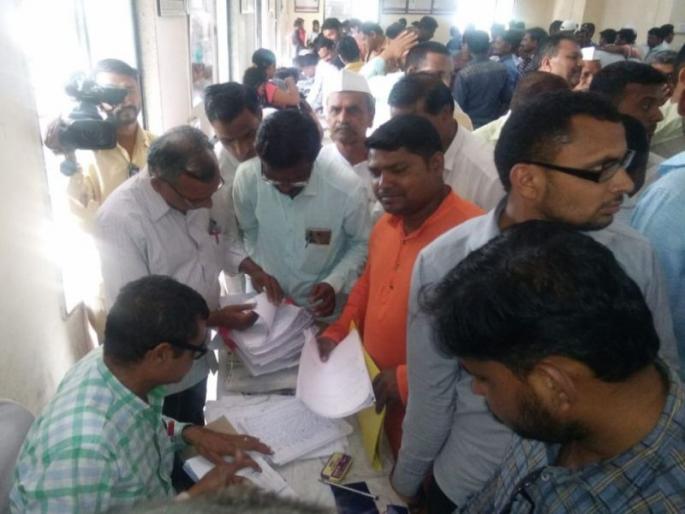 लोकमत न्यूज नेटवर्कशिरपूर/शिंदखेडा : ग्रामपंचायतींच्या सार्वत्रिक निवडणुकीसाठी अर्ज दाखल करण्याच्या शेवटच्या दिवशी शनिवारी शिरपूर व शिंदखेडा येथील तहसील कार्यालयांवर झुंबड उडाली होती. उमेदवारी अर्ज मोठ्या संख्येने दाखल झाले. शिरपूर तालुक्यातील ७ ग्रा.पं.च्या सरपंच व सदस्य पदांसाठी मिळून आजअखेर १९५ अर्ज तर शिंदखेडा तालुक्यात सरपंच व सदस्य पदांसाठी मिळून ४०३ अर्ज दाखल झाले आहेत. सोमवारी या अर्जांची छाननी करण्यात येणार आहे. शिंदखेडा : ४०३ अर्ज शिंदखेडा तालुक्यातील ९ ग्रामपंचायतीच्या निवडणुकीसाठी अर्ज दाखल करण्याचा शेवटच्या दिवशी ९सरपंच पदाच्या जागेसाठी २७ अर्ज दाखल झाले असुन एकुण ५७ अर्ज दाखल झाल. तर सदस्य पदासाठी ८९ जागांसाठी आज १६६ अर्ज दाखल झाले असून आजअखेर एकुण ३४६ अर्ज शेवटच्या दिवस अखेर दाखल झाले. पिंपरखेडा येथे सरपंच पदासाठी आज ३ अर्ज दाखल झाले आहे एकुण ५अर्ज शेवटच्या दिवसपर्यंत दाखल झाले आहे.तर सदस्य पदाच्या ७जागांसाठी २५ अर्ज,मेथी येथे सरपंच पदासाठीआज ५अर्ज दाखल झाले अखेर दिवस पर्यंत ९अर्ज दाखल झाले तर४प्रभागांसाठी ११जागेसाठी आज १५अर्ज दाखल झाले आहे.शेवटच्या दिवस अखेर एकुण ३४अर्ज दाखल झाले आहे.दाऊळ येथे सरपंच पदासाठी आज २अर्ज दाखल झाले असुन एकुण ६अर्ज दाखल झाले आहेत तर ३प्रभागात ९जागांसाठी ८अर्ज दाखल झाले आज अखेर एकूण ४४ अर्ज दाखल झाले आहे. दभाशी येथे सरपंचपदासाठी आज १अर्ज दाखल केला एकुण ६अर्ज सरपंच पदासाठी दाखल झाले आहे. सदस्य पदासाठी३प्रभागातील ९ जागांसाठी ६ अर्ज तर आज अखेर २८अर्ज दाखल झाले आहेत. मालपुर येथे सरपंच पदासाठी आज ४ अर्ज दाखल झाले असुन एकुण ७ अर्ज दाखल झाले आहेत ६ प्रभागांत १७ जागा असून आज ७६ अर्ज तर एकुण १०६ अर्ज सदस्यपदासाठी, आच्छी येथे सरपंच पदासाठी आज ४ अर्ज तर एकुण ५ अर्ज, सदस्य पदाच्या ७ जागांसाठी १३ अर्ज तर एकुण १५ अर्ज दाखल झाले आहे. विखरण येथे सरपंच पदासाठी दाखल झाले सरपंच पदासाठी सहा अर्ज दाखल झाले असून असून चार प्रभागासाठी ११ जागांसाठी आज अखेर १८ अर्ज दाखल झाले. एकूण ३७ अर्ज दाखल झाले आहेत. डोंगरगाव येथे सरपंच पदासाठी आज ४ अर्ज दाखल झाले असून एकूण ८ अर्ज दाखल झाले आहेत सदस्यपदाच्या तीन प्रभागासाठी साठी सात जागा असून आज २१ अर्ज दाखल झाले आहेत. चिलाणे येथे सरपंच पदासाठी आज दोन अर्ज दाखल झाले असून सरपंचपदासाठी ५ अर्ज दाखल झाले असून चार प्रभागांसाठी ११ जागा असून आज १० अर्ज दाखल झाले असून एकूण २६ अर्ज दाखल झाले आहेत आज शेवटच्या दिवशी अर्ज दाखल करण्यासाठी उमेदवारांनी मोठी गर्दी केली होती यामुळे तहसील कार्यालयात यात्रेचे स्वरूप प्राप्त झाले होते तालुक्यातील मालपूर, विखरण मेथी या गावांमध्ये चुरशीची निवडणूक हो